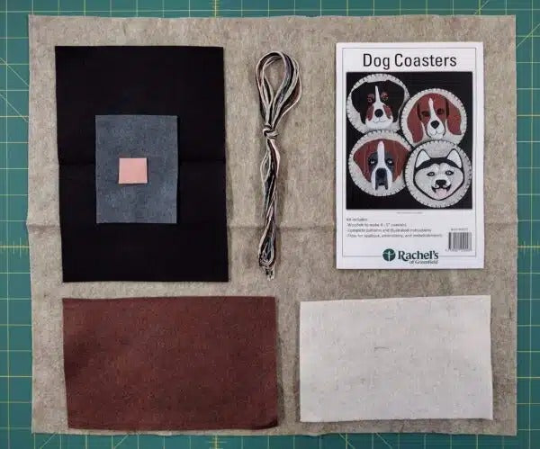 Man’s best friend gets the spotlight in this playful set of felt coasters. This kit makes four 5″ coasters, each featuring an adorable canine design — perfect for dog lovers and cozy tables alike.
