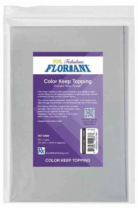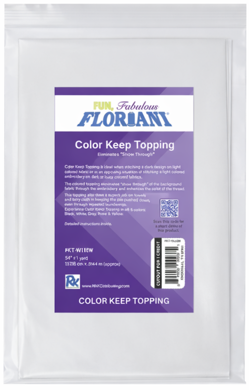 Floriani introduces Color Keep Topping, a new embroidery topping designed to improve stitch coverage in high-contrast projects.