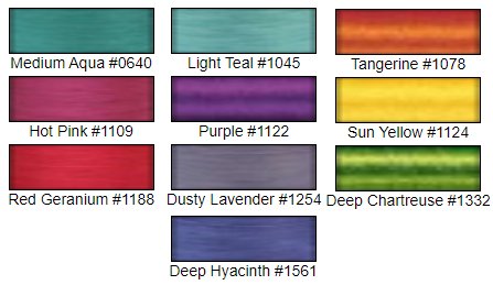 This set includes 10 perfectly coordinated colors of Sulky 12 Wt. cotton on convenient 50 yard Petite spools.